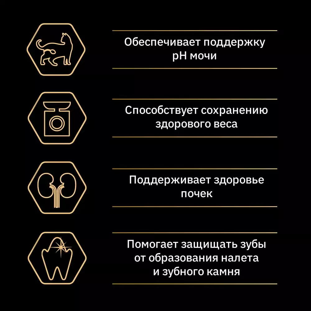 • Сухие корма PRO PLAN включают в себя специальную формулу, которая обеспечивает эффективную работу почек и правильный уровень кислотности мочи
