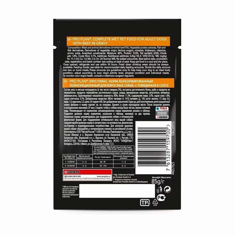 • Разнообразие вкусов: попробуйте влажные корма PRO PLAN для взрослых собак с курицей, говядиной или уткой