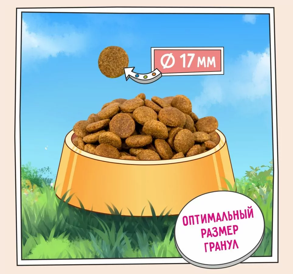 • Гранулы корма специально созданы с учетом физиологических особенностей собак всех пород.