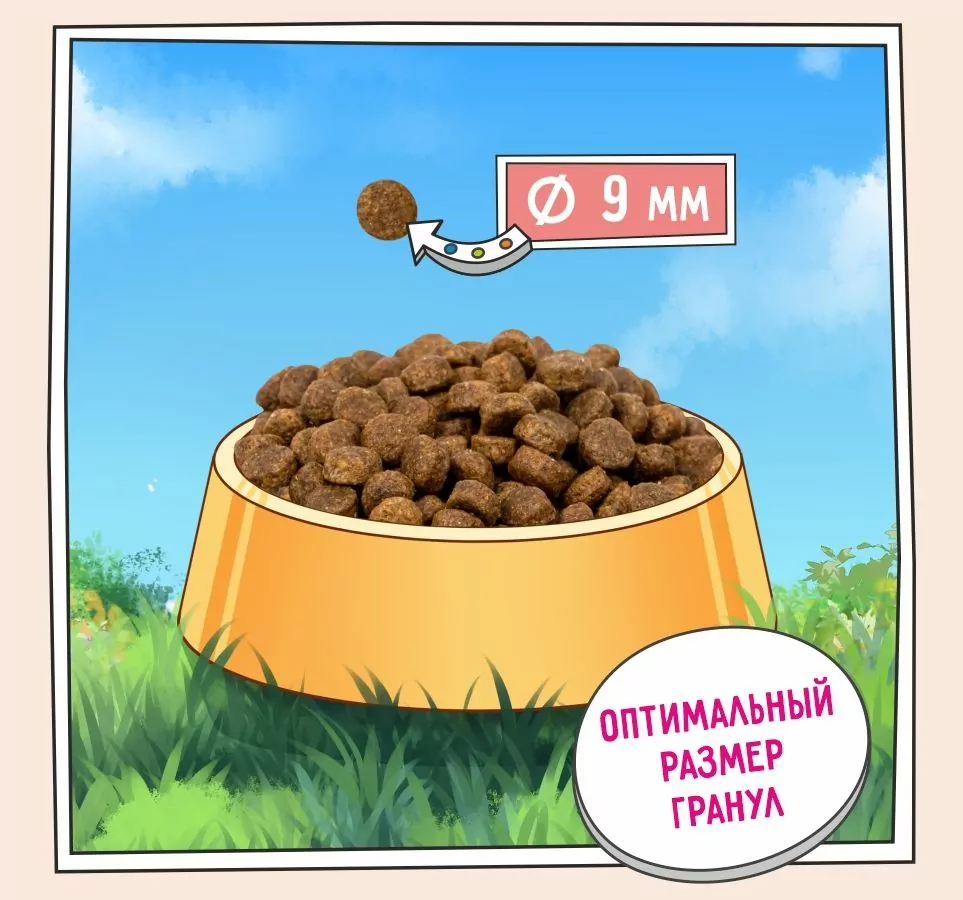 - Маленькие гранулы корма специально созданы с учетом физиологических особенностей щенков.
