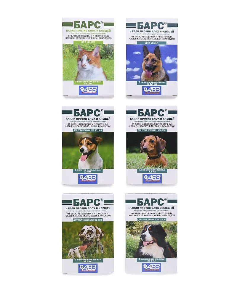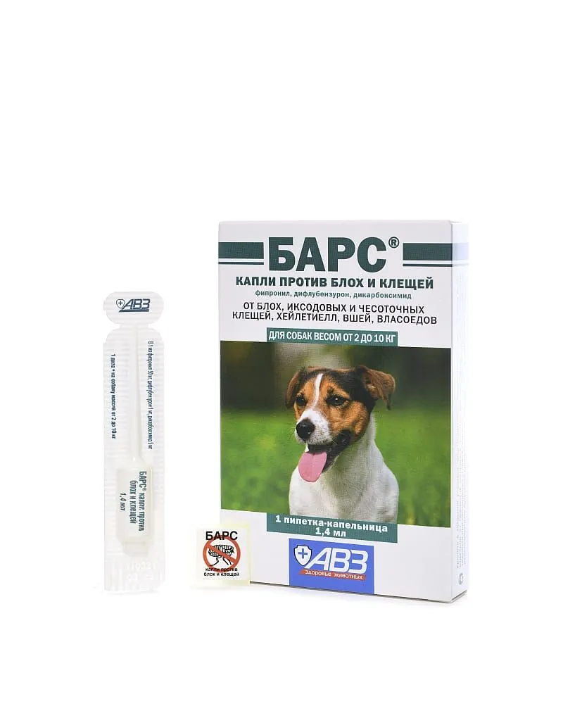 АВЗ: Барс капли (1пип) от блох, клещей, хейлетиелл, вшей, власоедов д/собак 2-10 кг