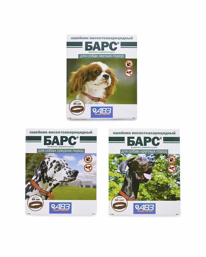 Непрерывное использование инсектоакарицидного ошейника «Барс» обеспечивает защиту собак от блох, вшей, власоедов, иксодовых клещей до 4-х месяцев. В первые дни применения ошейника возможно нападение и прикрепление иксодовых клещей на животное, но через 1 день паразиты погибают и засыхают или самопроизвольно отпадают.