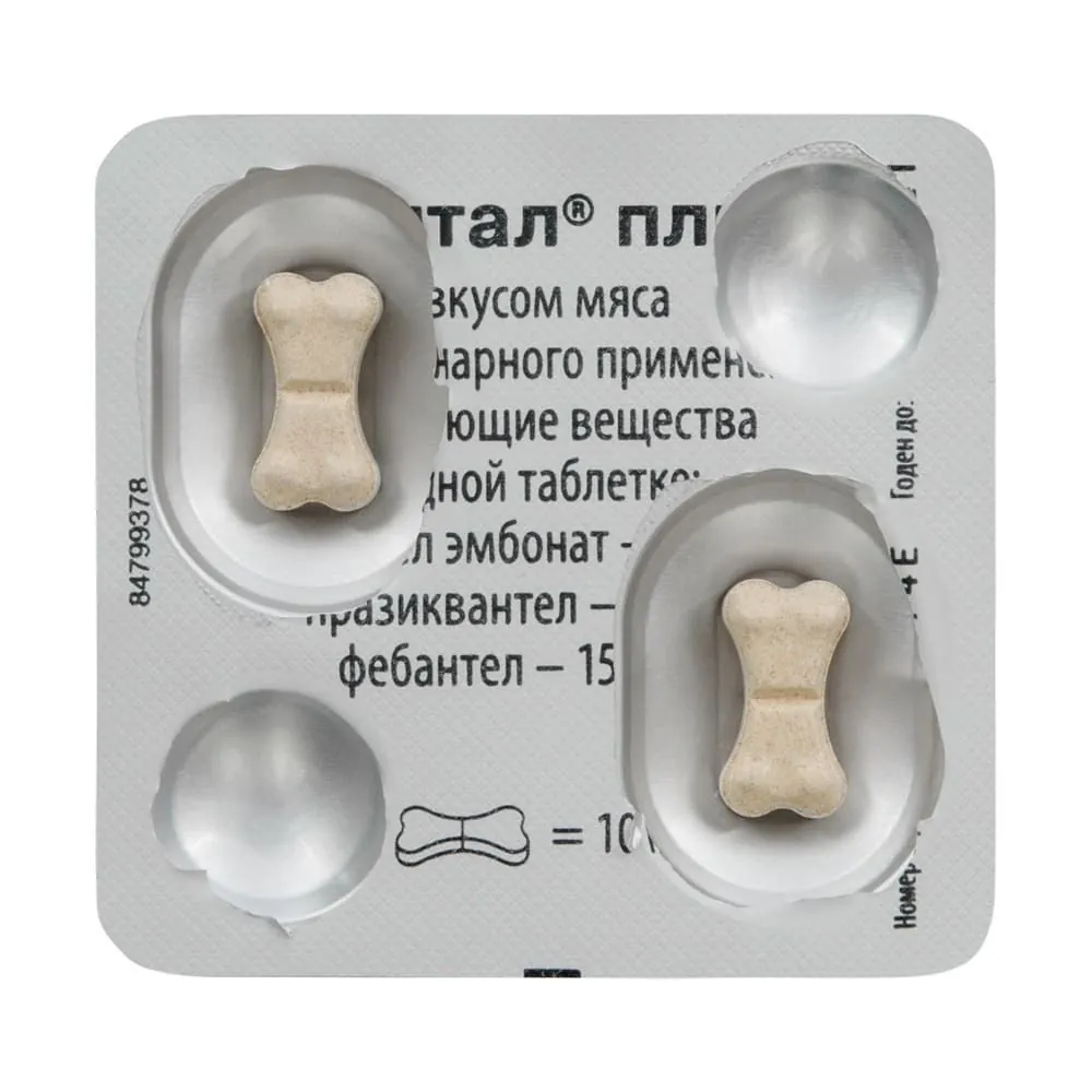 Дронтал®плюс выпускается в виде косточки со вкусом мяса с удобной дозировкой – 1 таблетка на 10 кг массы животного, подходит для собак с 2 кг веса. Разрешен всем породам собак. Производится в Германии.