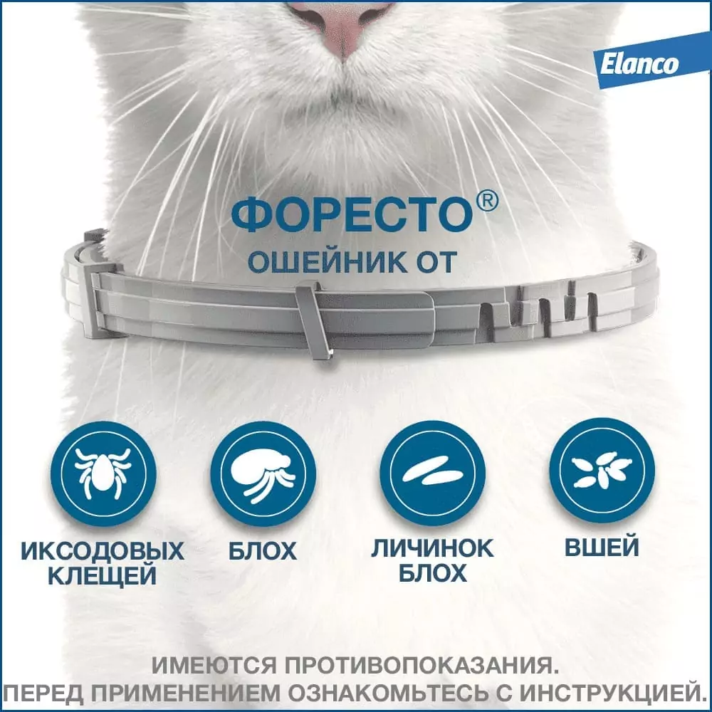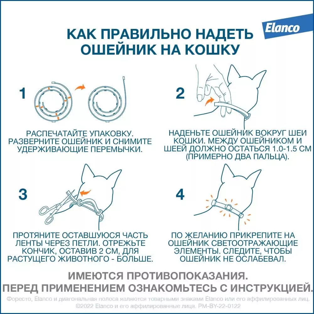 Ошейник от блох и клещей Форесто® — препарат от компании Elanco, который помогает защитить кошку от укусов клещей и блох1 до 8 месяцев. Просто наденьте ошейник на питомца.
